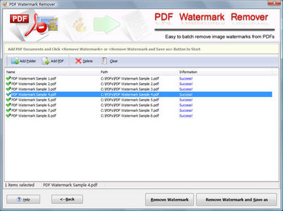 De esta manera, con PDF Watermark Remover podr??s eliminar del PDF aquellos logos que no desees, las marcas de agua, los sellos, las firmas, etc??tera. Permite procesar un n??mero ilimitado de ficheros PDF (e incluso la asombrosa cantidad de 1000 archivos a la vez)..